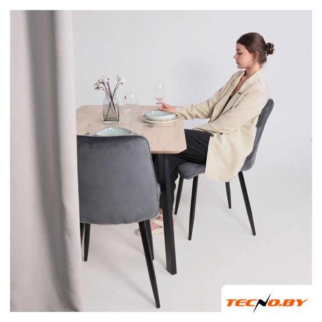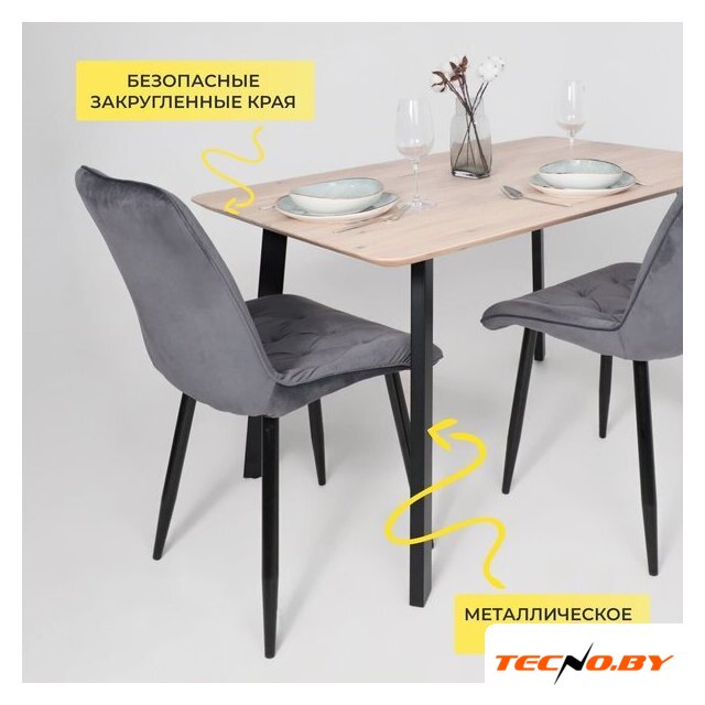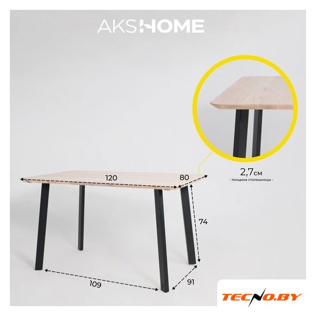 кухонный стол, прямоугольная, 1300x800 мм, высота 740 мм, материал: массив дерева (столешница), окрашенная сталь (опоры), коричневый