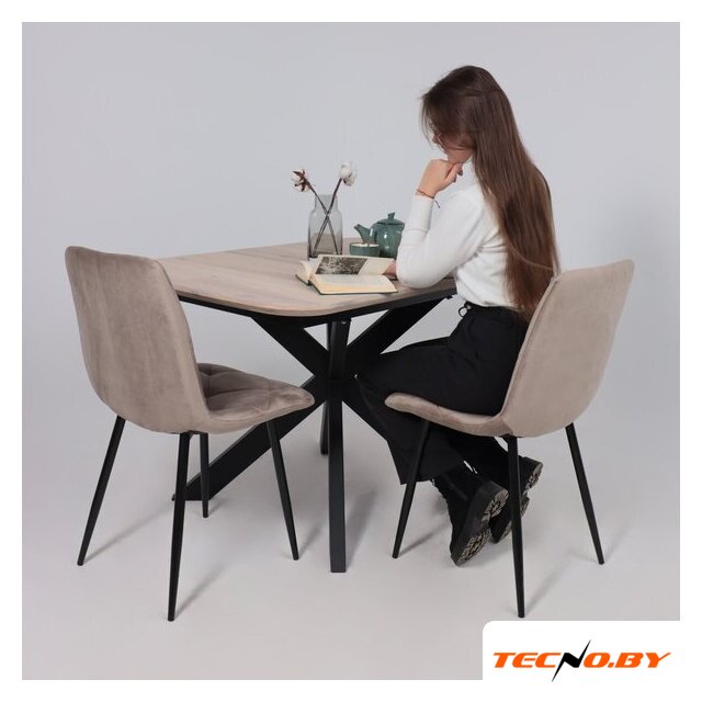 кухонный стол, круглая, 1200x1200 мм, высота 760 мм, материал: МДФ (столешница), сталь (опоры), серый