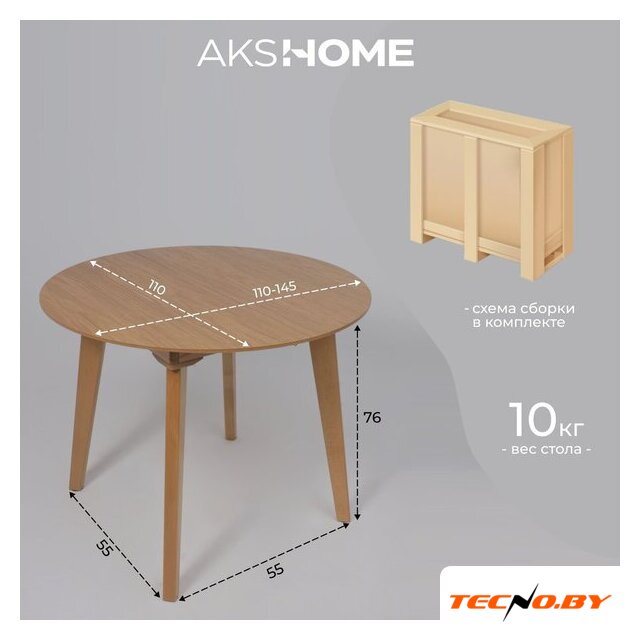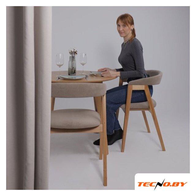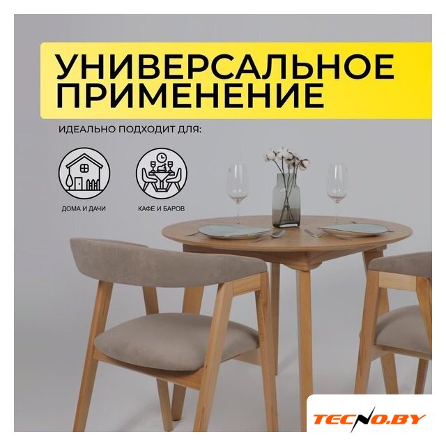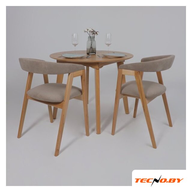 круглая, 1200x1200 мм, высота 770 мм, материал: МДФ (столешница), дерево (опоры), коричневый