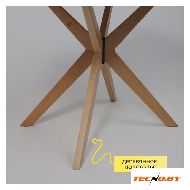 круглая, 1200x1200 мм, высота 770 мм, материал: МДФ (столешница), дерево (опоры), коричневый