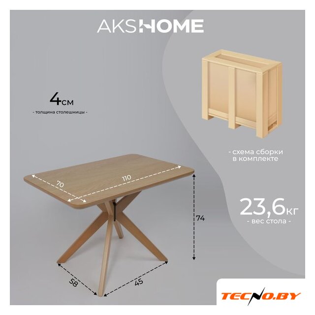 прямоугольная, раздвижной, 1100x1100 мм, высота 760 мм, в разложенном виде 1450x1100x760 мм, материал: массив дерева (столешница), дерево (опоры), светло-коричневый