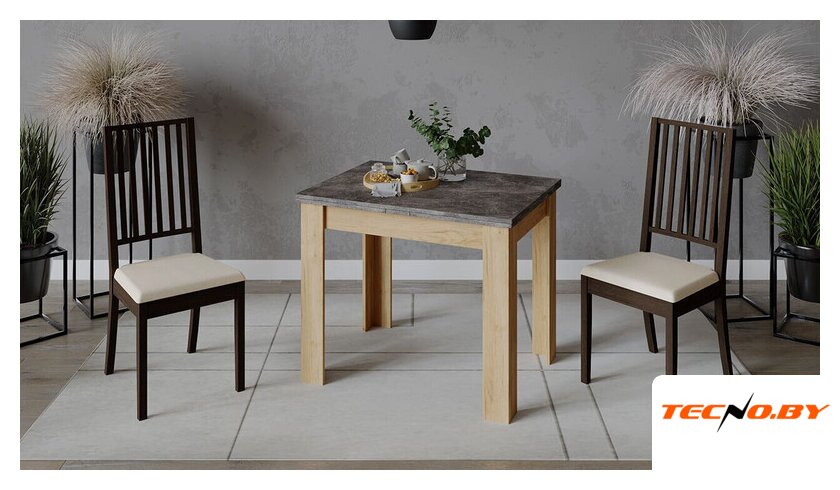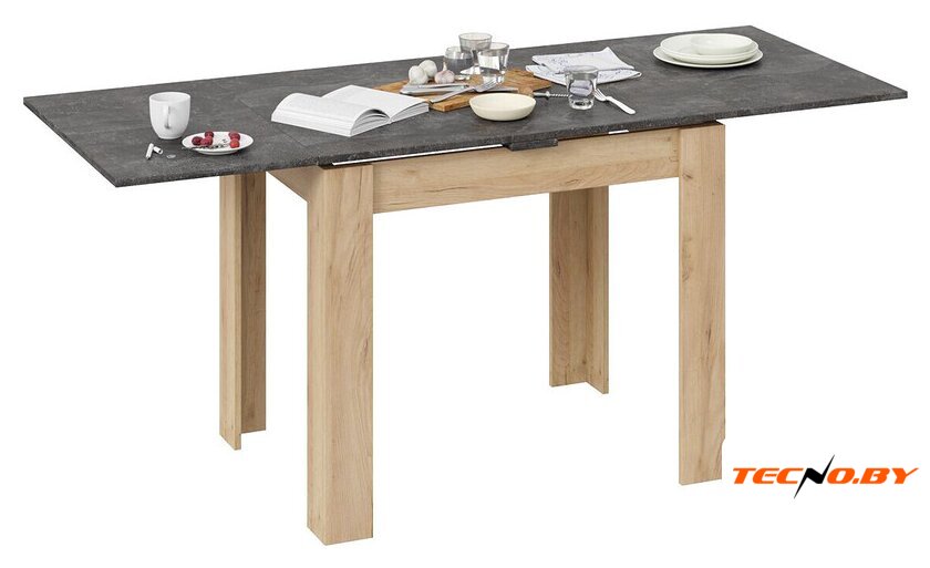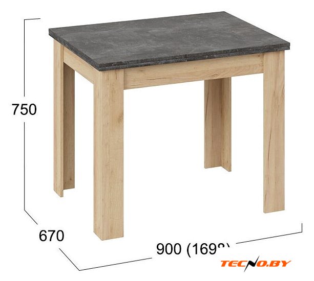 кухонный стол, прямоугольная, раздвижной, 900x670 мм, высота 750 мм, в разложенном виде 1698x670x750 мм, материал: ЛДСП (столешница), ЛДСП (опоры), серый