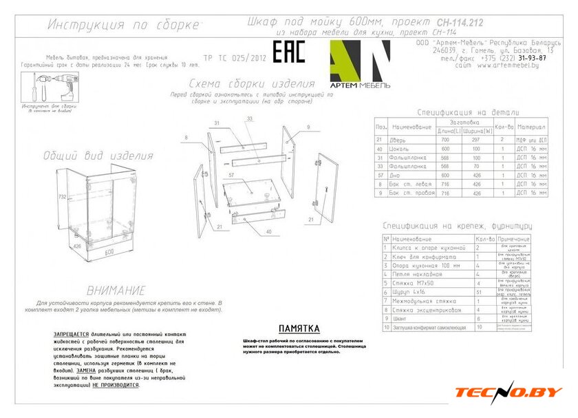 ширина 60 см, каркас ЛДСП, фасад ЛДСП