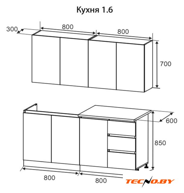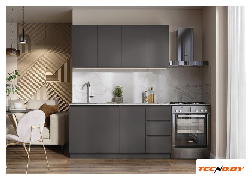 линейная, длина 220 см, ширина 60 см, каркас ЛДСП, фасад ЛДСП, установка мойки: накладная мойка, ширина шкафа под мойку 60 см