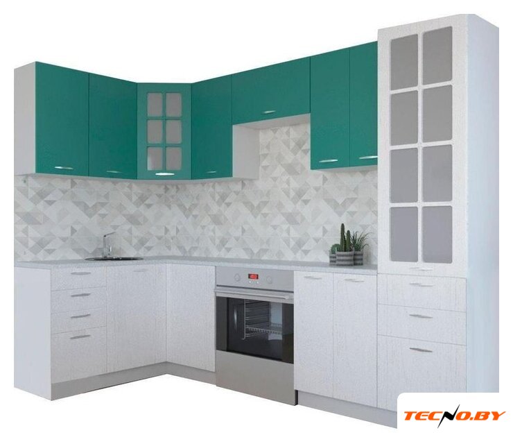 угловая, длина 210 см, ширина 170 см, каркас ЛДСП, фасад МДФ пленочный/стекло, установка мойки: врезная мойка