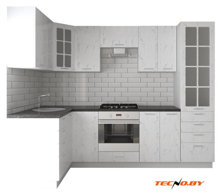 угловая, длина 210 см, ширина 170 см, каркас ЛДСП, фасад МДФ пленочный/стекло, установка мойки: врезная мойка