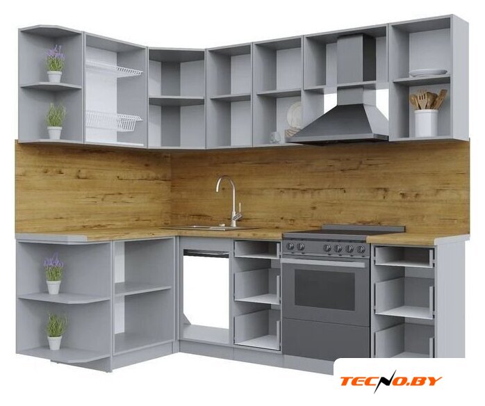 угловая, длина 340 см, ширина 168 см, каркас ЛДСП, фасад ЛДСП, установка мойки: врезная мойка, ширина шкафа под мойку 98 см