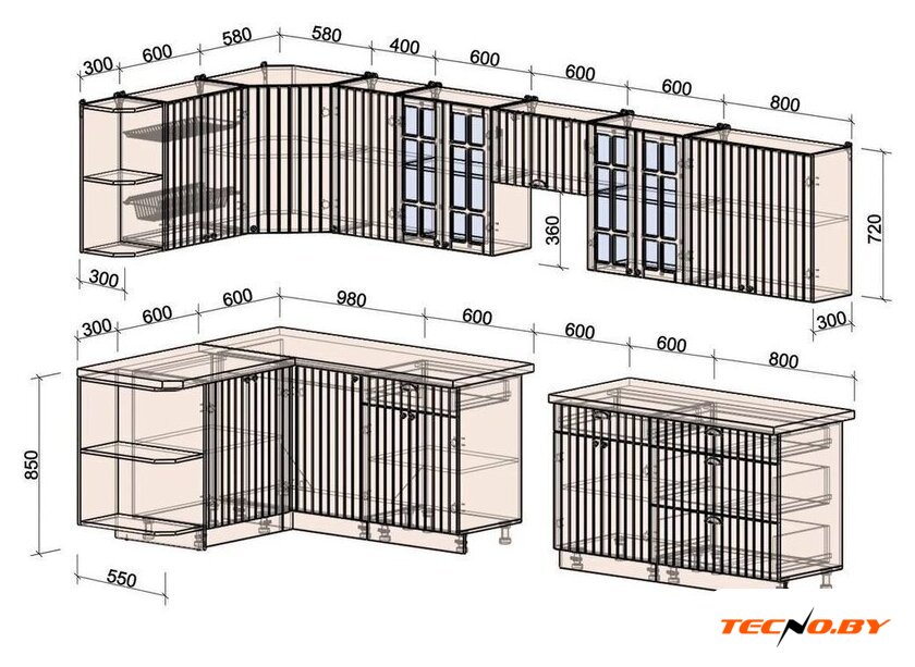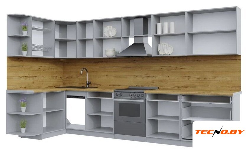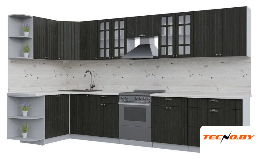 угловая, длина 260 см, ширина 150 см, каркас ЛДСП, фасад МДФ пленочный, установка мойки: врезная мойка, ширина шкафа под мойку 98 см