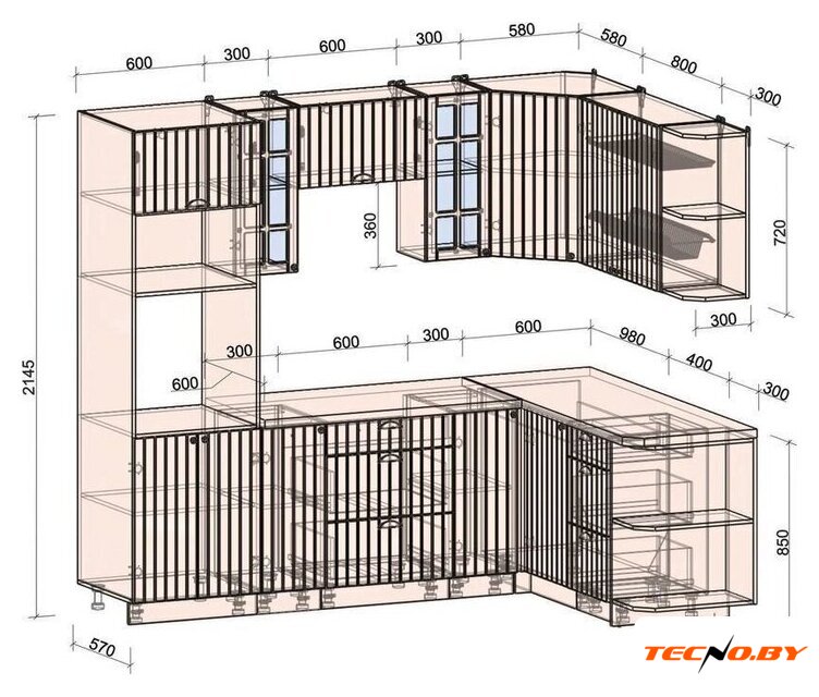 | Цвет нижних фасадов | дерево с серым оттенком |