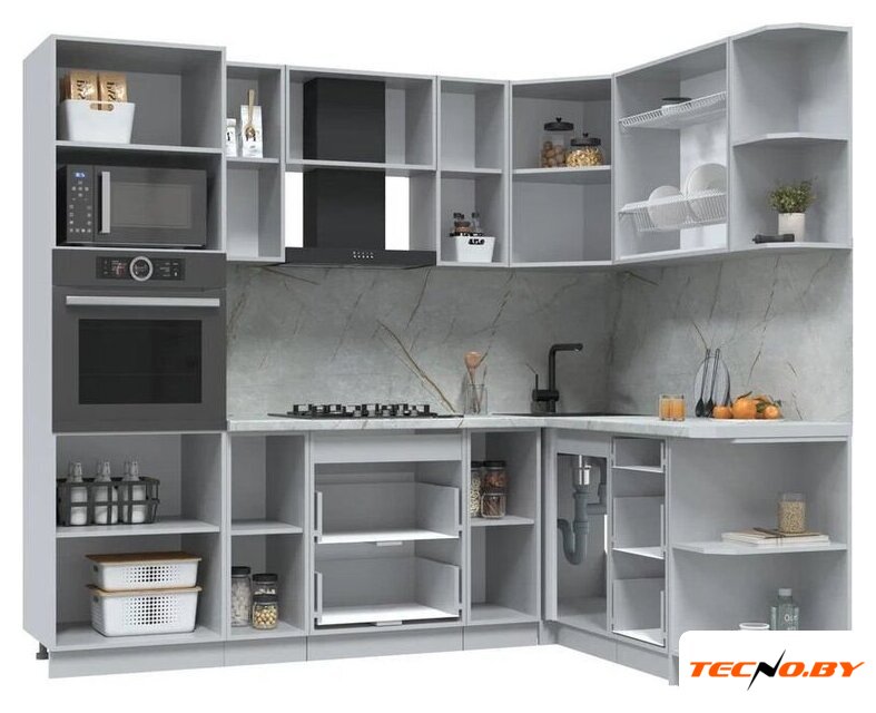 угловая, длина 240 см, ширина 188 см, каркас ЛДСП, фасад МДФ пленочный, установка мойки: врезная мойка, ширина шкафа под мойку 98 см