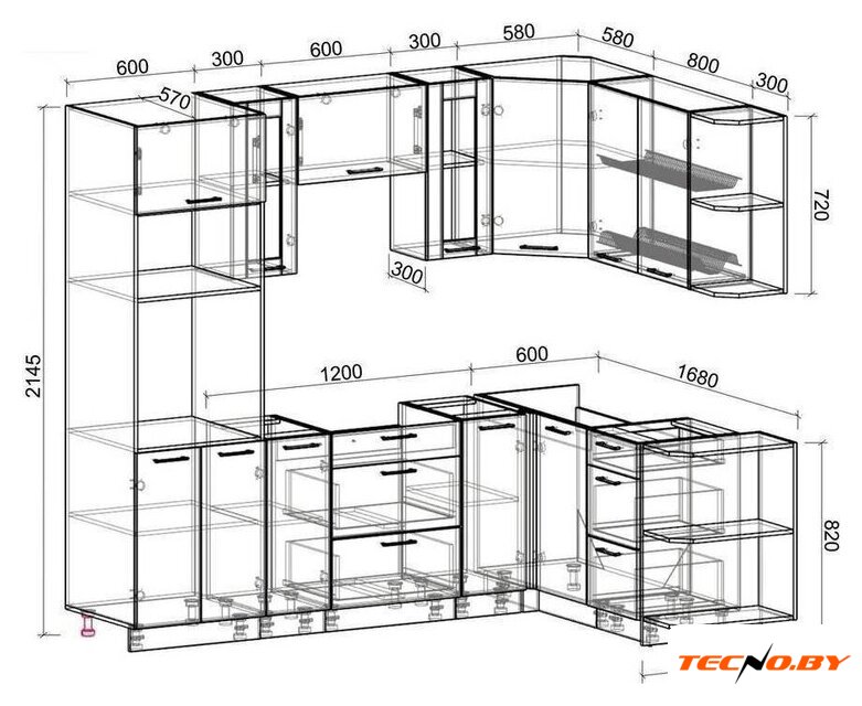 угловая, длина 280 см, ширина 168 см, каркас ЛДСП, фасад ЛДСП, установка мойки: врезная мойка, ширина шкафа под мойку 98 см