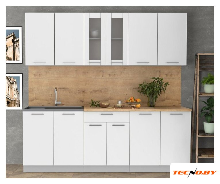 линейная, длина 220 см, каркас ЛДСП, фасад ЛДСП, установка мойки: накладная мойка, ширина шкафа под мойку 80 см
