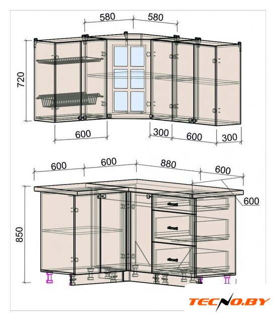 | Высота нижних шкафов | 85 см |