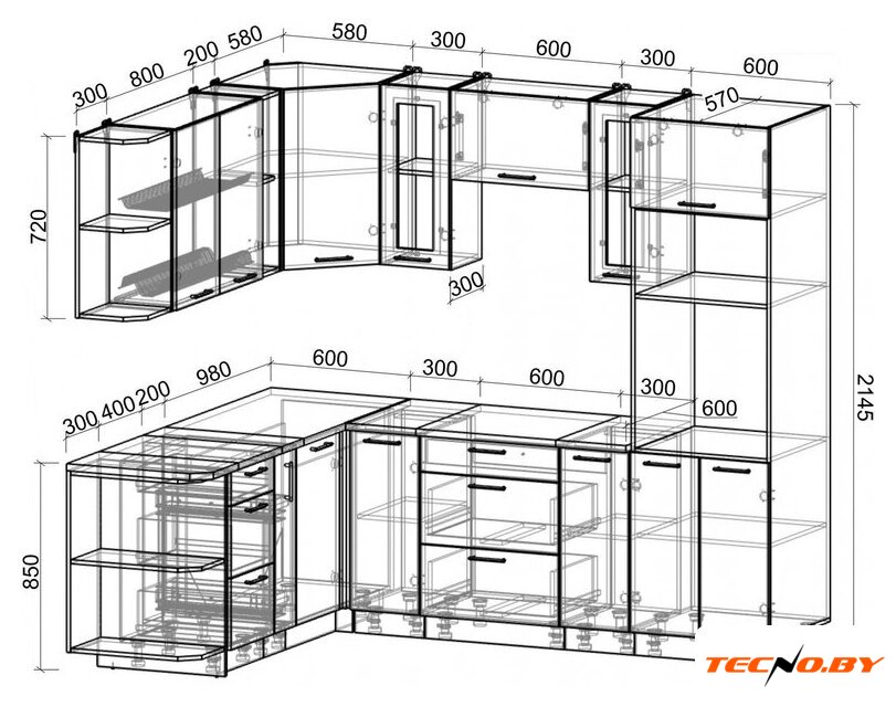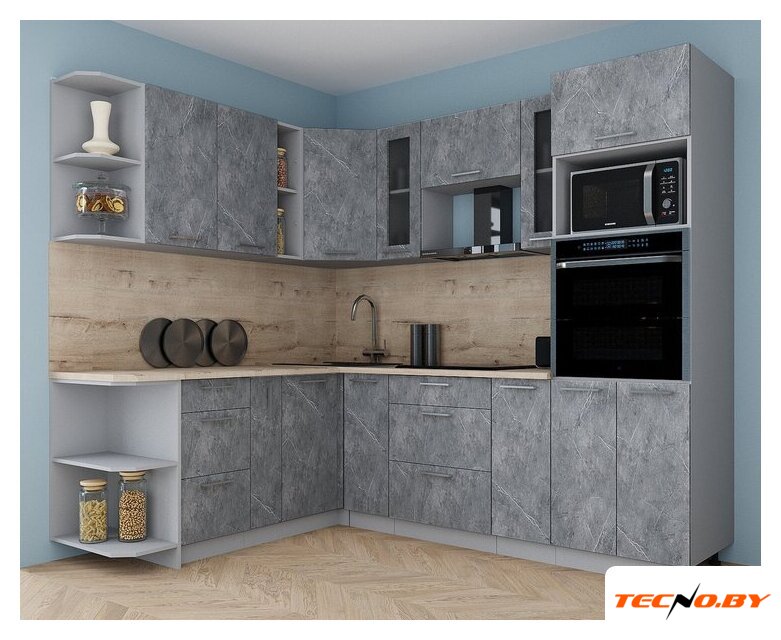 угловая, длина 260 см, ширина 168 см, каркас ЛДСП, фасад МДФ пленочный, установка мойки: врезная мойка, ширина шкафа под мойку 98 см