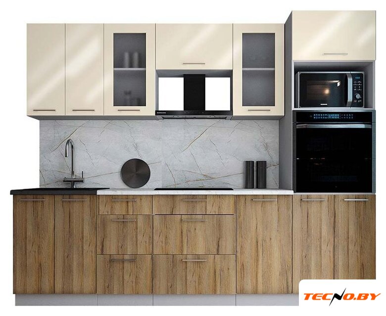 линейная, длина 220 см, ширина 60 см, каркас ЛДСП, фасад МДФ пленочный, установка мойки: накладная мойка, ширина шкафа под мойку 60 см