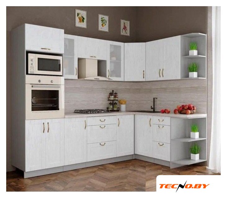 угловая, длина 260 см, ширина 150 см, каркас ЛДСП, фасад МДФ пленочный, установка мойки: врезная мойка, ширина шкафа под мойку 88 см