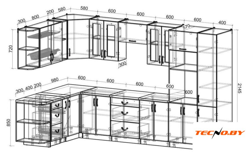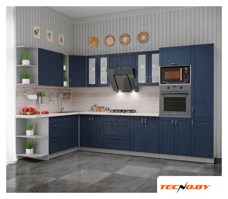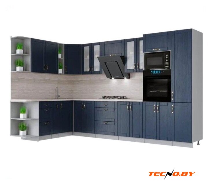 угловая, длина 320 см, ширина 170 см, каркас ЛДСП, фасад МДФ пленочный/стекло, установка мойки: врезная мойка