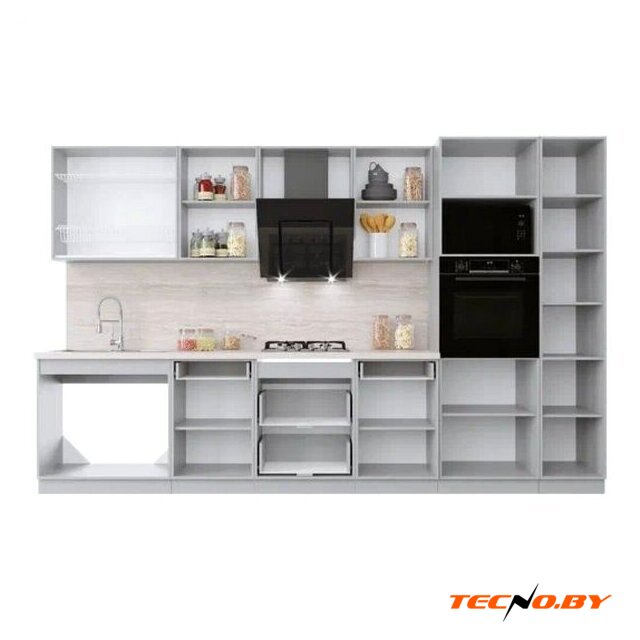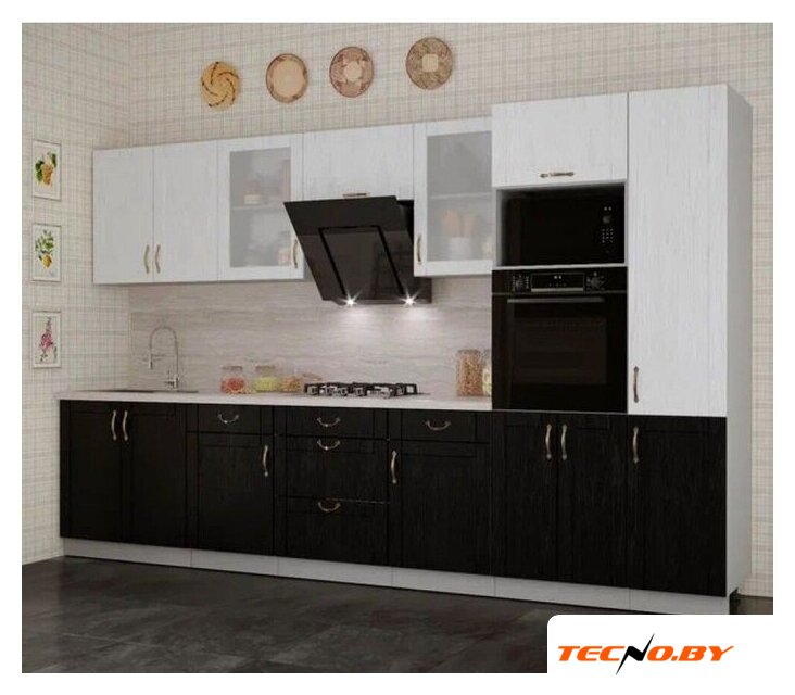линейная, длина 270 см, ширина 60 см, каркас ЛДСП, фасад стекло/МДФ пленочный, установка мойки: врезная мойка, ширина шкафа под мойку 60 см