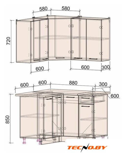 угловая, длина 130 см, ширина 120 см, каркас ЛДСП, фасад ЛДСП, установка мойки: врезная мойка, ширина шкафа под мойку 88 см