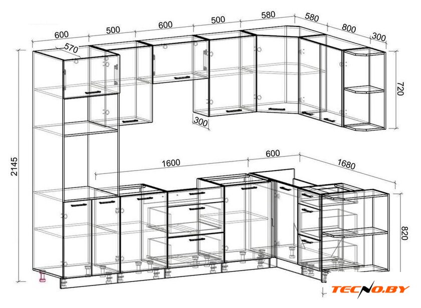 угловая, длина 240 см, ширина 168 см, каркас ЛДСП, фасад ЛДСП, установка мойки: врезная мойка, ширина шкафа под мойку 98 см