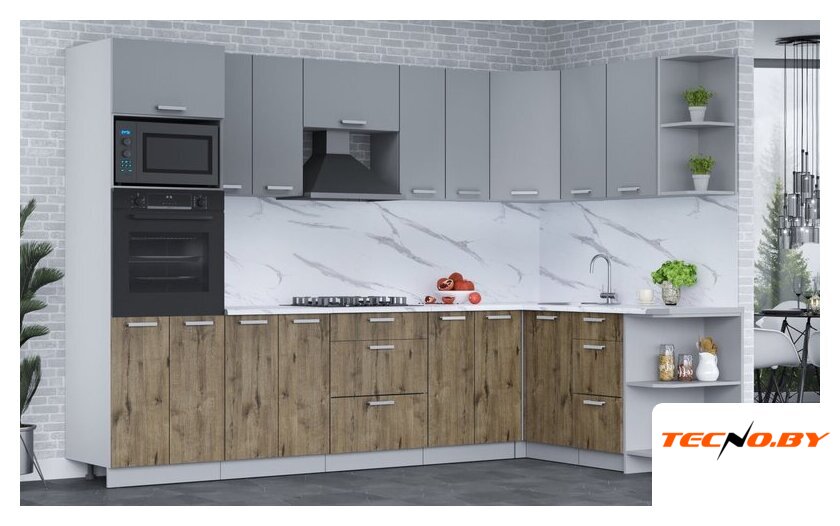 угловая, длина 300 см, ширина 168 см, каркас ЛДСП, фасад ЛДСП, установка мойки: врезная мойка, ширина шкафа под мойку 98 см