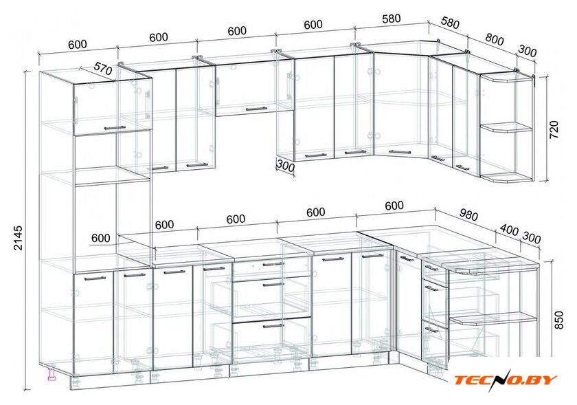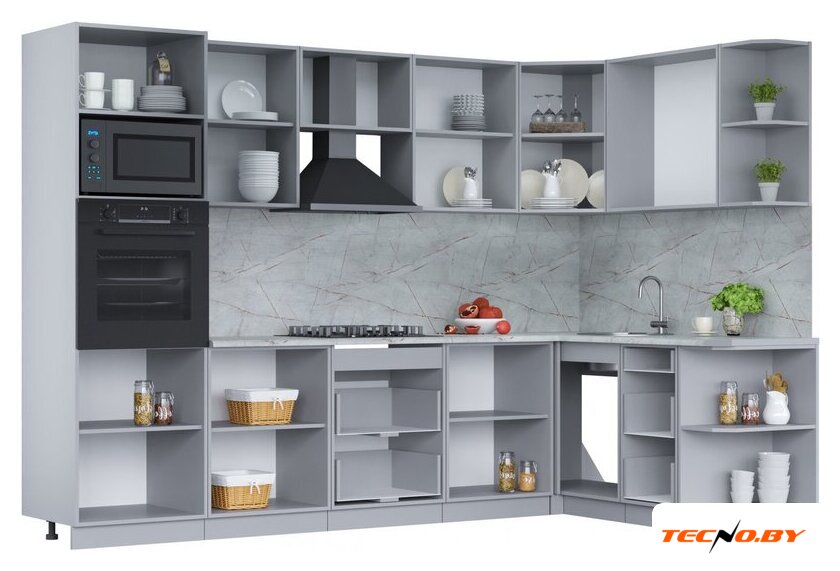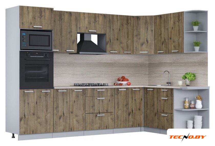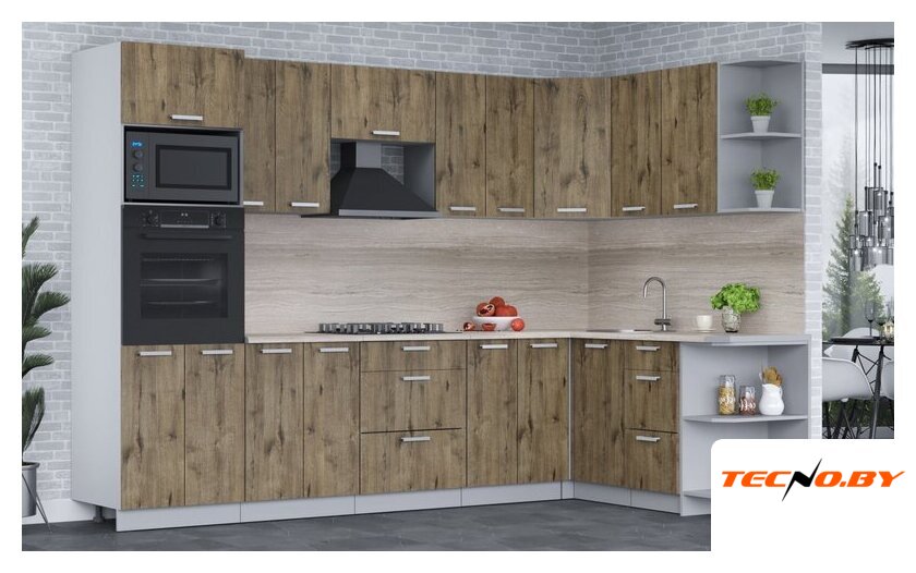 угловая, длина 340 см, ширина 168 см, каркас ЛДСП, фасад ЛДСП, установка мойки: врезная мойка, ширина шкафа под мойку 98 см