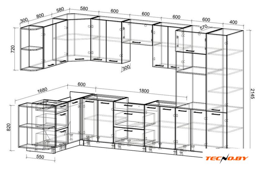 угловая, длина 340 см, ширина 168 см, каркас ЛДСП, фасад ЛДСП, установка мойки: врезная мойка, ширина шкафа под мойку 98 см