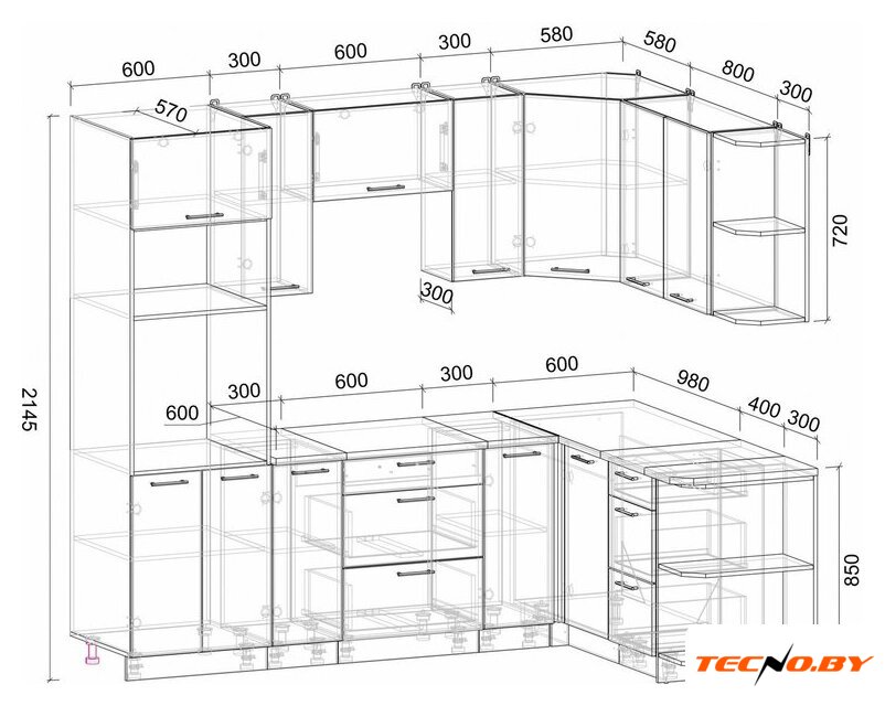 | Конструкция кухни | угловая |