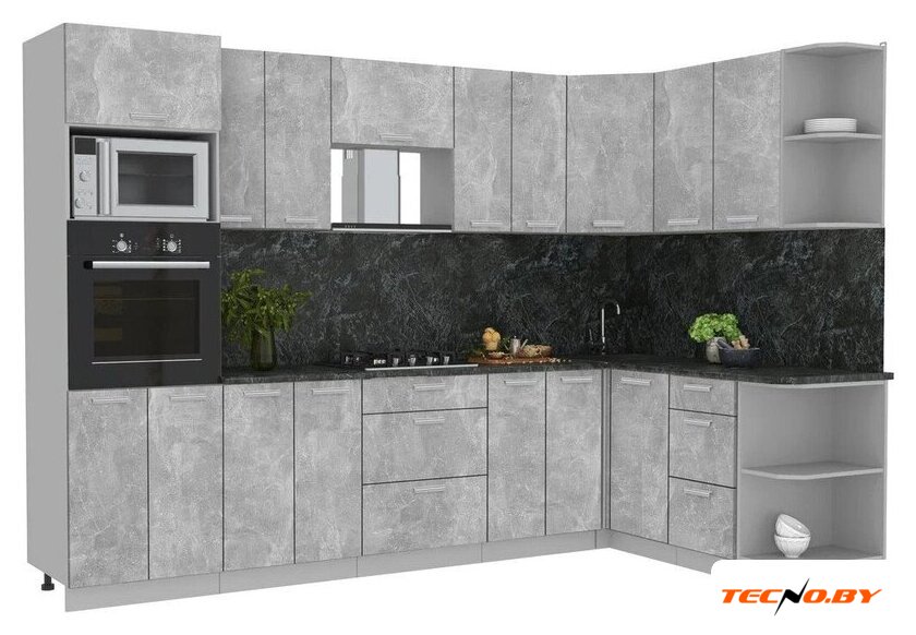 угловая, длина 300 см, ширина 168 см, каркас ЛДСП, фасад ЛДСП, установка мойки: врезная мойка, ширина шкафа под мойку 98 см