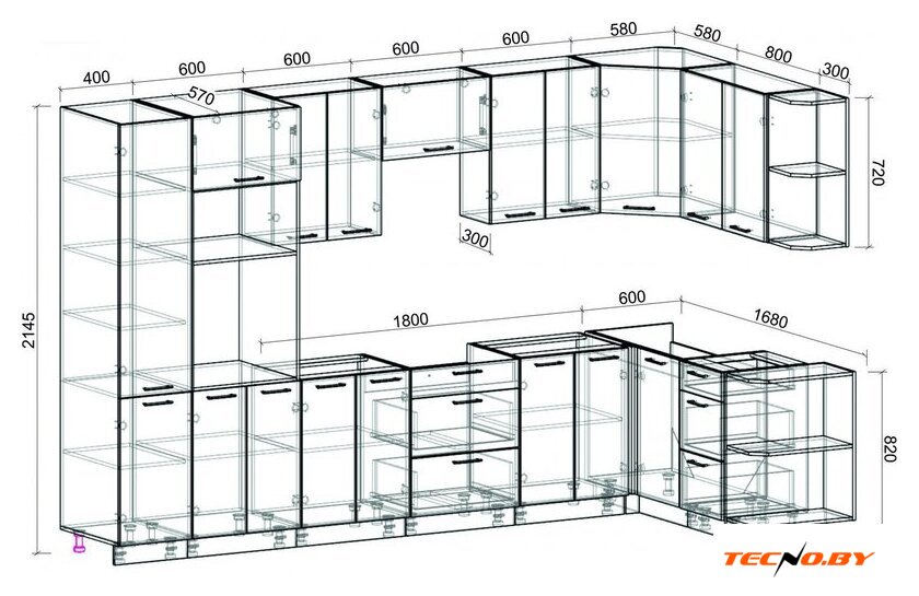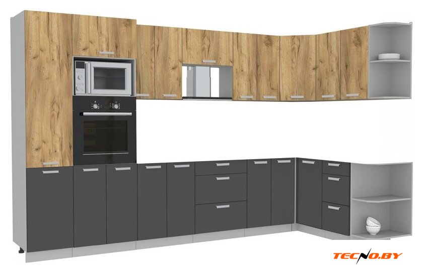 угловая, длина 340 см, ширина 168 см, каркас ЛДСП, фасад ЛДСП, установка мойки: врезная мойка, ширина шкафа под мойку 98 см