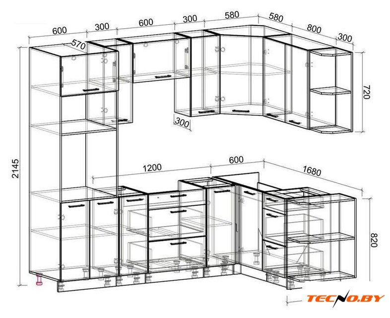 угловая, длина 280 см, ширина 168 см, каркас ЛДСП, фасад ЛДСП, установка мойки: врезная мойка, ширина шкафа под мойку 98 см