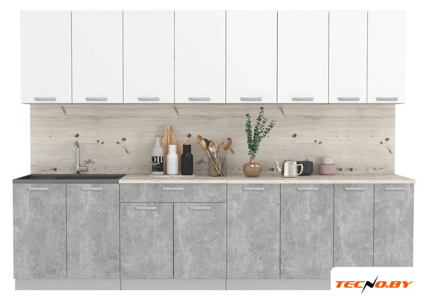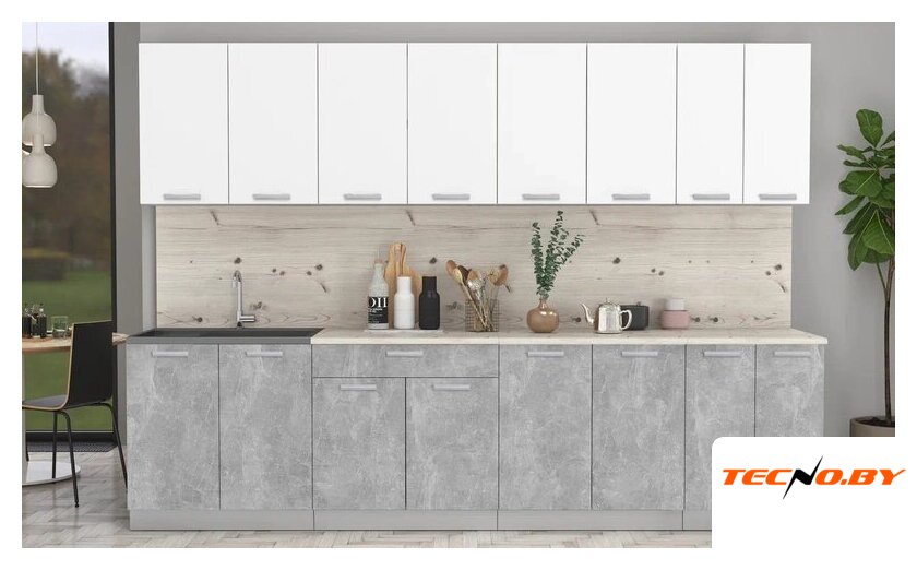 линейная, длина 300 см, ширина 60 см, каркас ЛДСП, фасад ЛДСП, установка мойки: накладная мойка, ширина шкафа под мойку 60 см