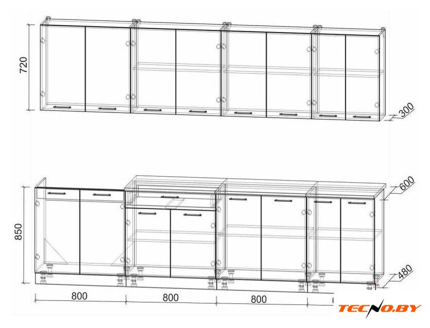 | Глубина верхних шкафов | 30 см |