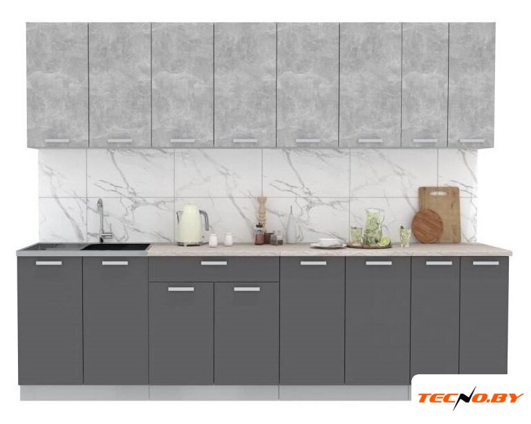 линейная, длина 200 см, ширина 60 см, каркас ЛДСП, фасад ЛДСП, установка мойки: врезная мойка, ширина шкафа под мойку 60 см