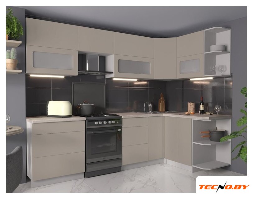 угловая, длина 260 см, ширина 150 см, каркас ЛДСП, фасад МДФ пленочный, установка мойки: врезная мойка, ширина шкафа под мойку 88 см