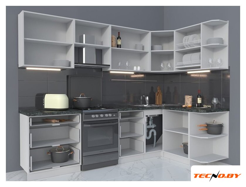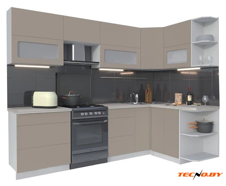 угловая, длина 320 см, ширина 150 см, каркас ЛДСП, фасад МДФ пленочный, установка мойки: врезная мойка, ширина шкафа под мойку 98 см