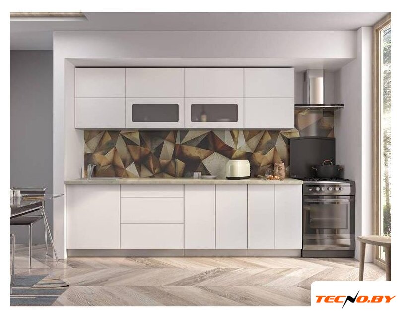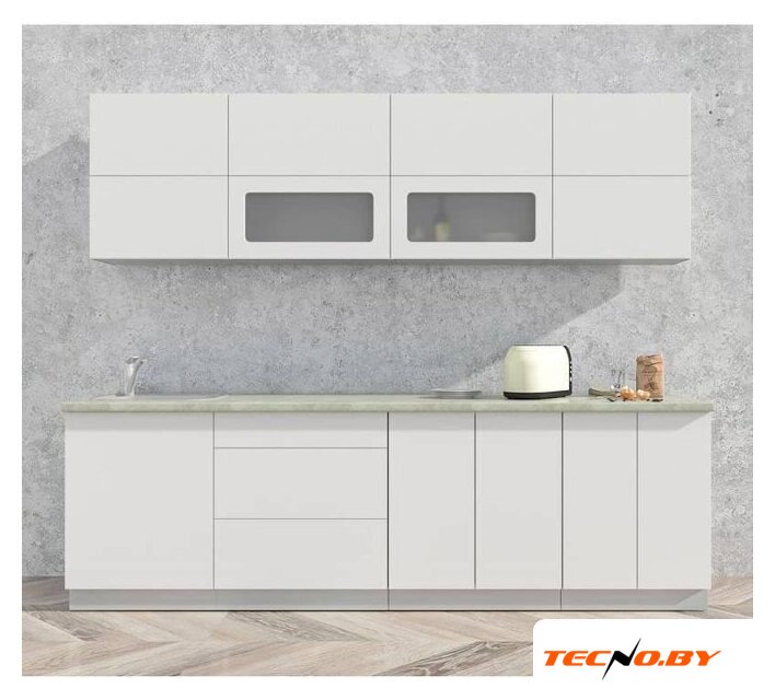 линейная, длина 270 см, ширина 60 см, каркас ЛДСП, фасад МДФ пленочный, установка мойки: врезная мойка, ширина шкафа под мойку 80 см