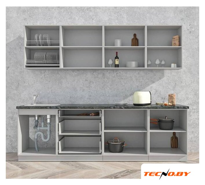 линейная, длина 260 см, ширина 60 см, каркас ЛДСП, фасад ЛДСП, установка мойки: врезная мойка, ширина шкафа под мойку 60 см