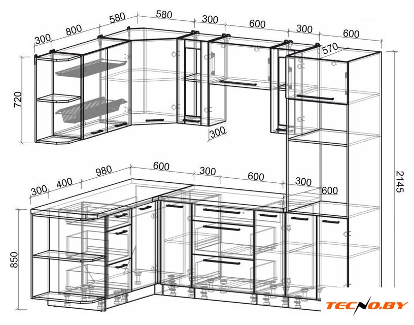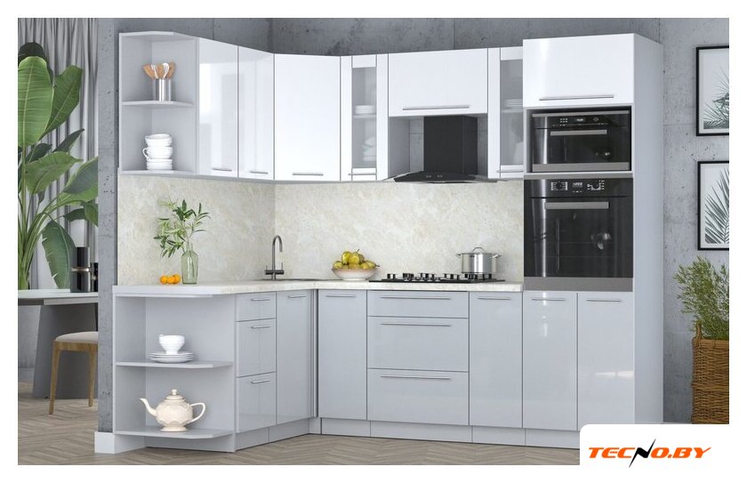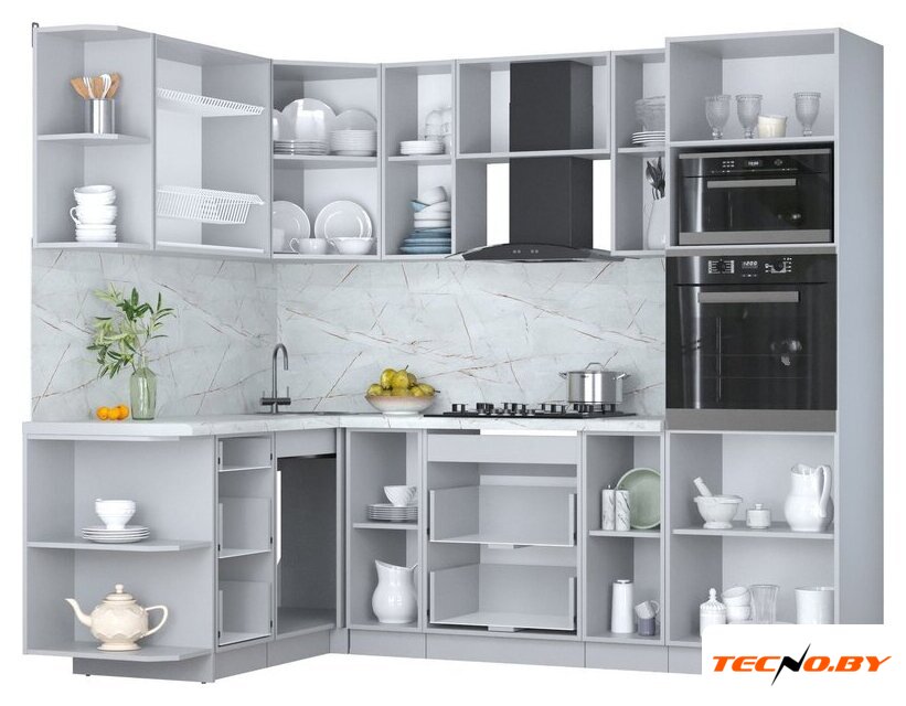 угловая, длина 260 см, ширина 150 см, каркас ЛДСП, фасад МДФ пленочный, установка мойки: врезная мойка, ширина шкафа под мойку 88 см