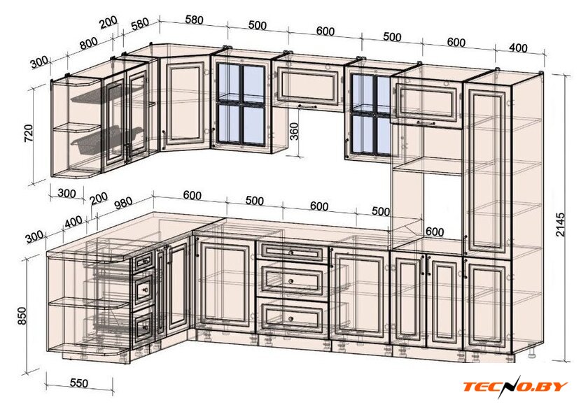 | Высота нижних шкафов | 85 см |