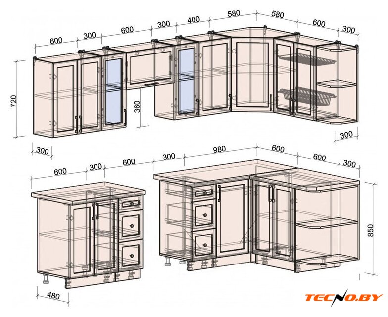 | Высота нижних шкафов | 85 см |