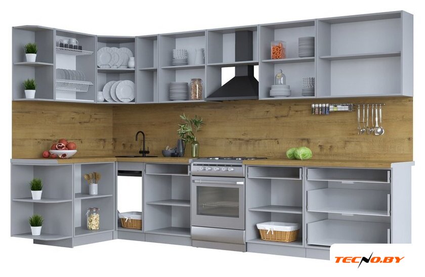 угловая, длина 320 см, ширина 168 см, каркас ЛДСП, фасад МДФ пленочный, установка мойки: врезная мойка