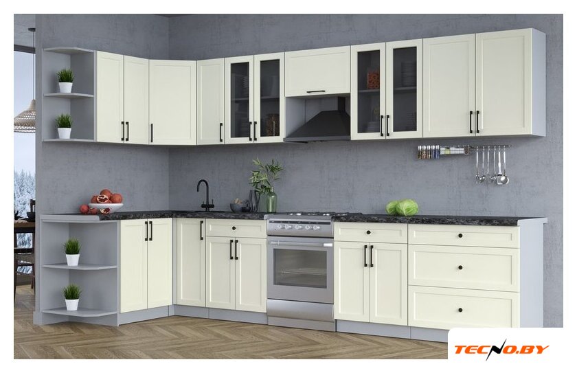 угловая, длина 320 см, ширина 170 см, каркас ЛДСП, фасад МДФ пленочный/стекло, установка мойки: врезная мойка