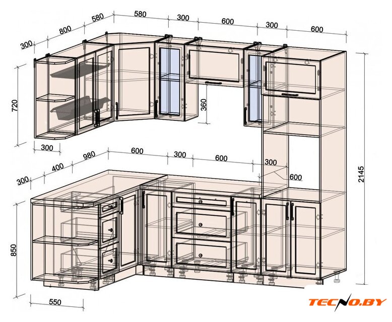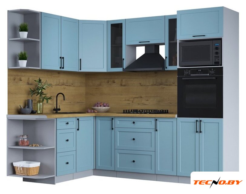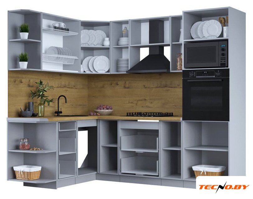 угловая, длина 260 см, ширина 150 см, каркас ЛДСП, фасад МДФ пленочный, установка мойки: врезная мойка, ширина шкафа под мойку 98 см