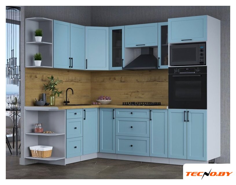 угловая, длина 360 см, ширина 150 см, каркас ЛДСП, фасад МДФ пленочный, установка мойки: врезная мойка, ширина шкафа под мойку 98 см