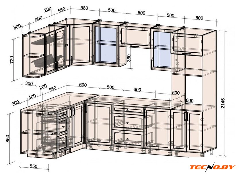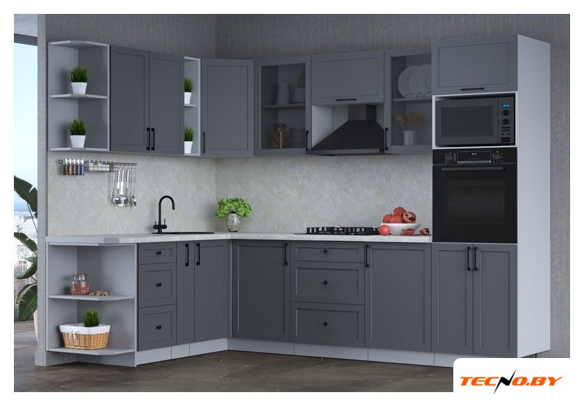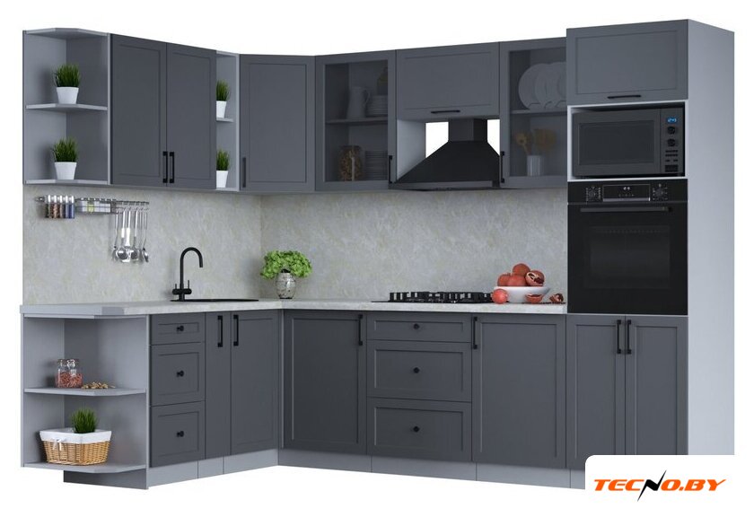 угловая, длина 320 см, ширина 188 см, каркас ЛДСП, фасад МДФ пленочный, установка мойки: врезная мойка, ширина шкафа под мойку 98 см