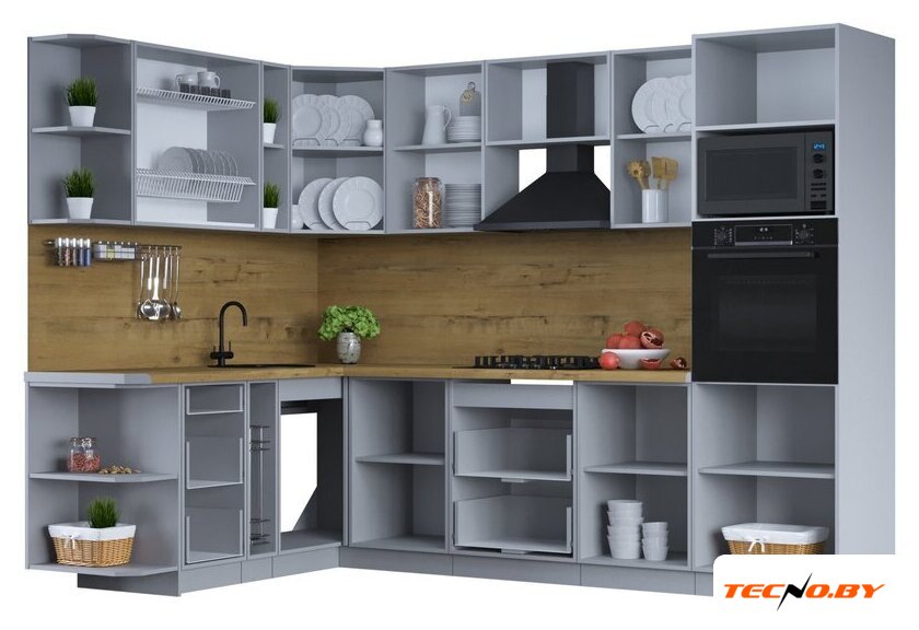 угловая, длина 320 см, ширина 168 см, каркас ЛДСП, фасад МДФ пленочный, установка мойки: врезная мойка