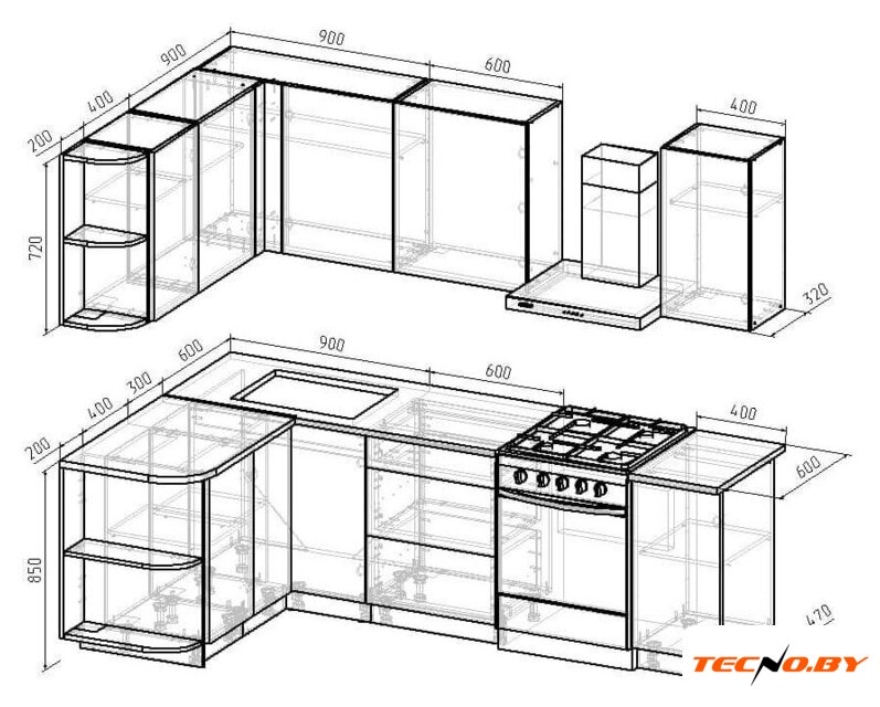 | Высота нижних шкафов | 85 см |