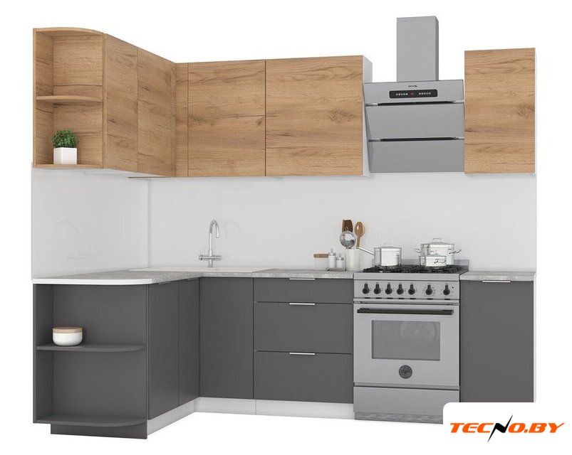 угловая, длина 260 см, ширина 150 см, каркас ЛДСП, фасад постформинг, установка мойки: врезная мойка