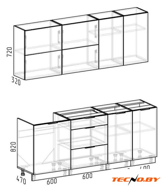 линейная, длина 300 см, ширина 60 см, каркас ЛДСП, фасад ЛДСП, установка мойки: накладная мойка, ширина шкафа под мойку 80 см